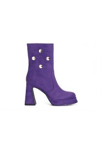 Women's microfibre ankle boot with four hexagonal studs. a perfect seventies-style shoe the 95mm high heel together with the 18mm platform are a perfect mix of height beauty and comfort.