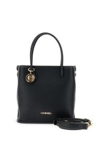 mini tote with tubular handles and metallic detail black