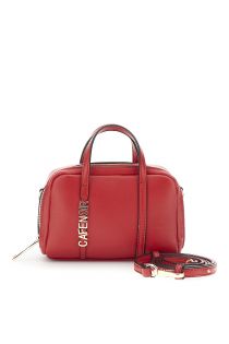 Smooth faux leather mini bag with maxi metallic lettering. Adjustable and removable shoulder strap for dual use: handheld or crossbody. Compact and modern design.
