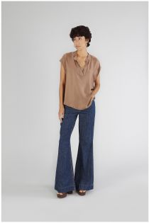 Oversized drop shoulder blouse made of viscose satin with blended inserts. perfect to combine with a pair of jeans.