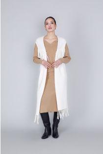 Oversized vest with fringe pattern made of soft viscose blend yarn. Ideal for a casual and relaxed look. Perfect for layering over sweaters and dresses for a versatile style. The model is 174 cm tall and wears a size small.