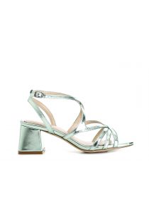 Patent effect sandals with crossed laces. the padded genuine leather insole makes the shoe comfortable even after several hours of use. the heel is 50mm.