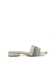 patent-effect slipper with rhinestones green