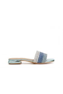 patent-effect slipper with rhinestones sky blu