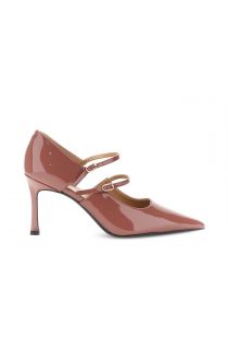 patent pumps with double buckle antique pink