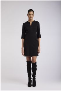 Sheath-type dress with 3/4 sleeves and distinctive 'v' neckline. made of a comfortable stretch fabric.