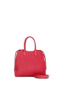 Pleated bucket bag with tubular handles. drawstring closure. bag with shoulder strap.