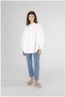 Loose fit shirt with long ruffled sleeves. made of elastic cotton poplin. button closure on the front. its soft line transmits multiple functions and adapts well to different occasions of use.