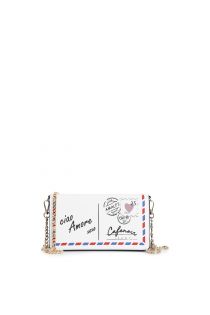 Women's clutch bag with postcard print gold chain and vintage details. perfect for adding a unique and romantic touch to your casual or elegant look.