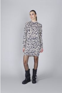 Hooded minidress in a warm and soft printed wool blend. Perfect for a casual and bold look in the colder months. Regular fit. The model is 173 cm tall and wears a size S.
