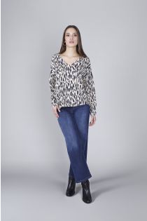 V-neck sweater made of soft wool blend yarn with an animal print. Comfort and casual style for a bold and versatile look. Regular fit. The model is 172 cm tall and wears a size S.