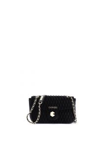 Quilted velvet shoulder bag with gold hexagonal studs on shoulder strap. magnetic closure.