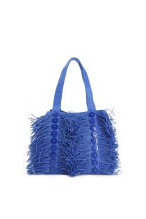 Raffia shopping bag with fringe details and decorative buttons. large and practical design perfect for adding an original touch to your summer outfits.