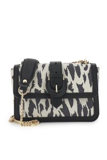 rigid shoulder bag with flap animal print