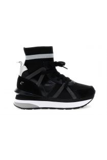 Running ankle boots in black stretch fabric or animal print. Fabric lining, leather insole, and 4 cm high sole. Comfort and style for a statement sneaker.