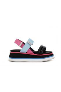 Sandals with colourful nylon bands and Velcro closure, sole in colourful micro multi-layer and comfortable fussbett.