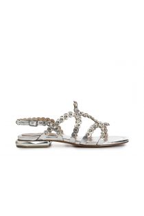 sandals with multiple straps and rhinestones silver