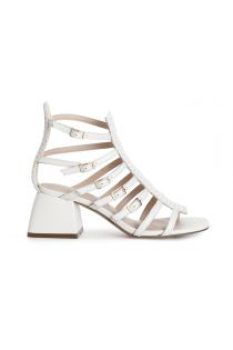 Cage sandals in woven nappa with straps and buckles. the insole is in leather. shoe that can be worn all day thanks to the 6.3 cm high wide-based heel and the comfortable support base.