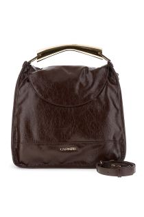 Naplak-effect shoulder bag with structured metal handle, charm, and metal lettering. Equipped with an adjustable and removable shoulder strap.