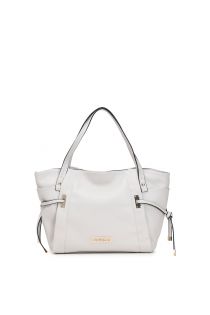 Shopper with statement decorative stitching on the front and tied strings on the sides