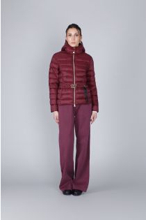 short down jacket with logo belt burgundy