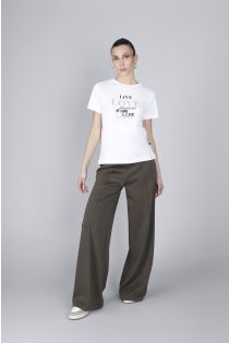Short-sleeved stretch cotton T-shirt with a 'live and love' print on the front. Regular fit and casual style perfect for a fresh and modern look. The model is 173 cm tall and wears a size small.