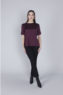 Elegant short-sleeved blouse in stretch viscose satin with a simple and refined design. Regular fit. The model is 172 cm tall and wears a size S.