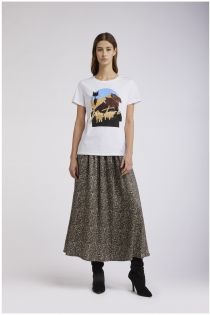 short-sleeved t-shirt with "cat noir in the mountains" print white