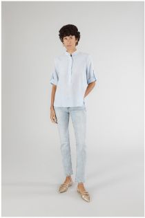 Comfort fit shirt with korean neckline made of an elegant silk blend muslin. roll-up elbow-length sleeves. wardrobe must-have to wear on the day with a skirt or jeans.