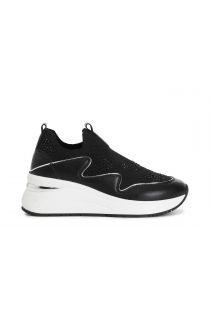 Women's slip-ons in fabric with rhinestone pattern and coated leather. internal footbed. a practical and functional choice for those seeking comfort without sacrificing style.