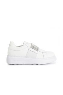 Slip-on sneakers embellished with an elastic band studded with rhinestones. leather upper and insole. box sole.