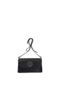 Smooth leather shoulder bag with flap. tone-on-tone enamelled oval logo. magnetic clasp. bag with adjustable shoulder strap.