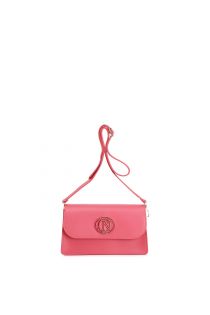 smooth leather flap with enamelled logo hot pink