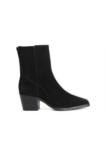 Suede ankle boot. . zipper on the inside. 55 mm high heel. the insole is in leather. a texan style shoe with a bold character that will guarantee an extra edge to your looks.