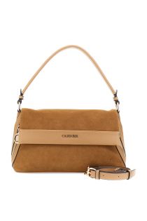 Soft bag with a suede-effect flap, zip lettering, and metal charm. Removable shoulder strap and chic design for a feminine and contemporary style.