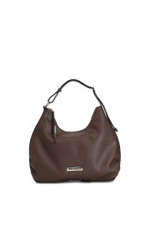 soft shopping bag with contrasting edges, tag with metal cn logo dark brown