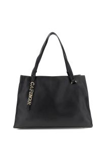 Soft bag in faux leather with a grained effect, large soft design and unlined handles with maxi metallic lettering, equipped with a large flat internal pocket with zip.