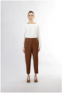 Straight leg trousers with elasticated back waist made of bi-stretch fabric. must-have item for the autumn winter season.