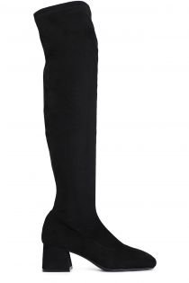 Over-the-knee stretch boot with a slim shape. 60mm thick heel. the insole is in leather. footwear with a great personality.