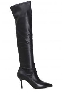 Stretchy faux leather slim heeled boots, 7.5 cm high heels