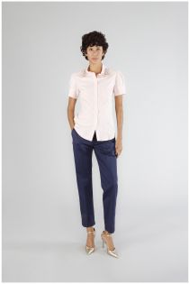 Regular fit shirt with short ruffled sleeves and jewel appliqué on the collar. made of striped elastic cotton poplin. perfect to match with trousers or jeans.