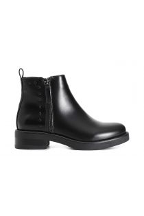 Women's brushed leatherette ankle boot with side zip all embellished with studs. the insole is leather.