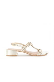 suede and laminated leather slipper with jewel buckles gold