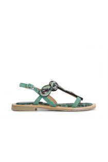 Suede and spotted print sandal with rhinestone accessory. comfortable padded insole for a soft fit. 15mm-high heel. perfect footwear to combine with multiple looks.