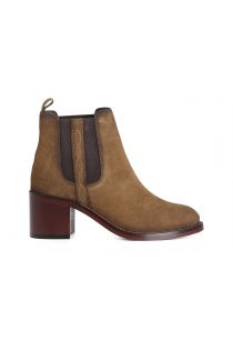 Women's suede ankle boot with side stretch panels. the insole is leather. a shoe with a rounded toe and a 65 mm square heel that makes any outfit comfortable yet edgy.