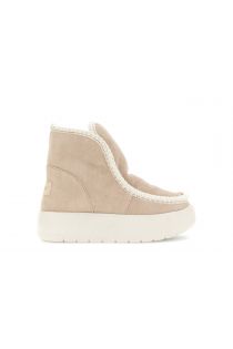 suede ankle boots with stitching and fur beige