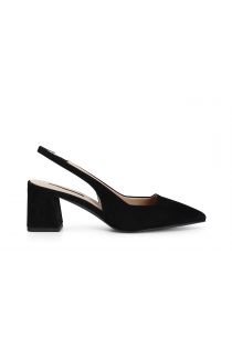 Suede décolleté with lace. the insole is in leather. slim-fit shoe. the chunky heel is 6.2 cm.