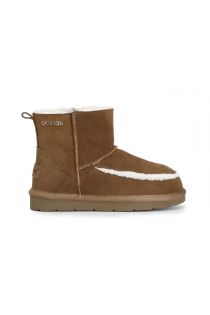 Suede ankle boot with faux fur lining enriched with a cute contrasting insert.