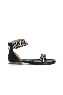 Suede sandals with rhinestone circles. bands with rhinestones on the anklet. top with zip on the back. the particular shape of the heel makes the shoe super chic and super glamorous. the lining and insole are in leather. high heel h. 2 cm. comfortable to wear and easy to match.