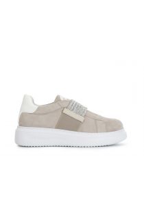 Suede slip-on sneakers embellished with a rhinestone band. leather upper and insole. box sole.